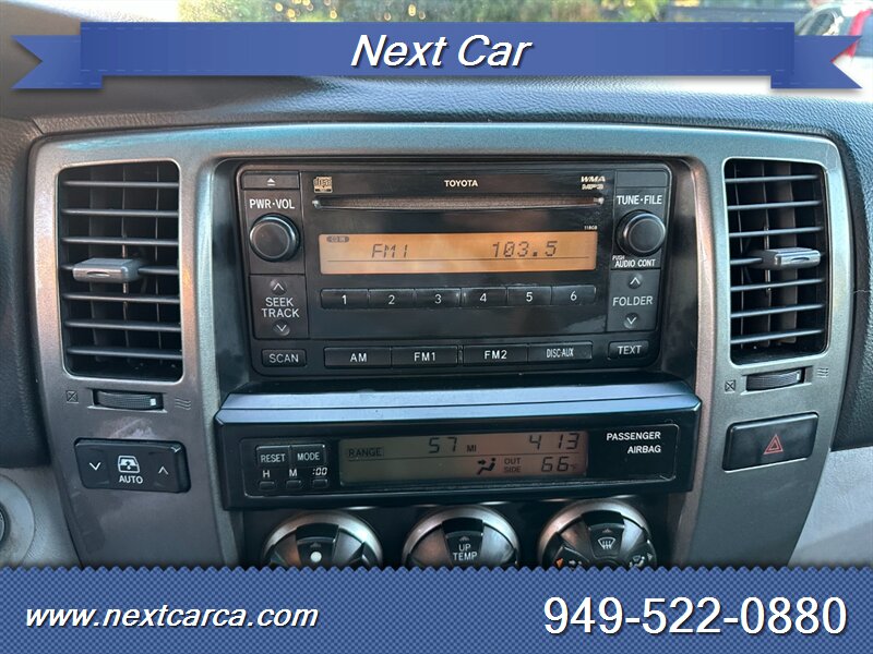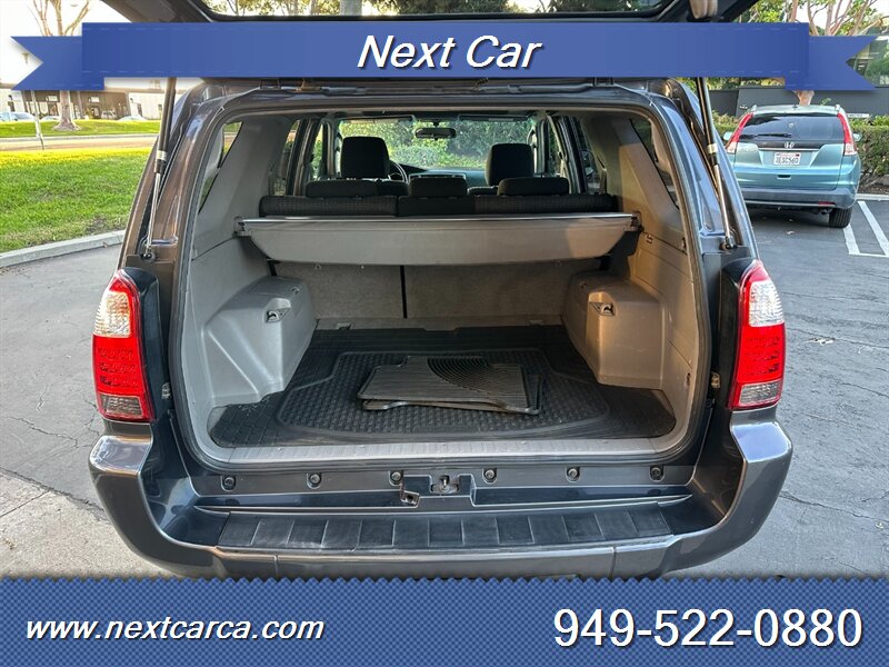 ****************************************************** By Appointment Only ************************************************************************* Legendary 2006 Toyota 4Runner Sport Edition 2WD. Equipped with 6 Cylinder engine and Automatic Transmission, Equipped with features such as Seats, Alloy Wheels, Power Locks & Windows and much more, This nice and super sharp looking vehicle is in great shape inside and outside. The engine runs very strong. The transmission is in excellent performing condition. All the power equipment and gauges work perfect. The attractive exterior is in great shape. This vehicle looks, drives and feels perfect. The interior, as shown in the pictures, is in great shape with no signs of abuse. Everything looks fresh and clean inside. Fully Serviced, Smogged and ready for a new home. Clean Title, and Clean CarFax History Report. Please call (949) 522-0880 for personal assistance and to get more information about this vehicle. Price excludes government fees and taxes, any finance charges, any dealer document preparation charge, and any emission testing charge. The list price is based on cash purchase. Please note, the actual mileage at the time of delivery may be higher than stated on the ad due to local test drives and dealer demonstration. Vehicle may or may not have more than one key.