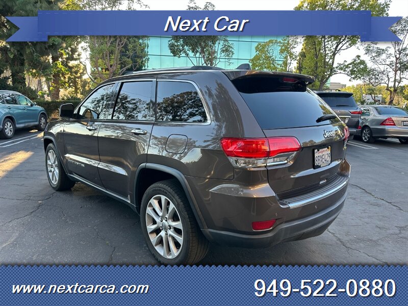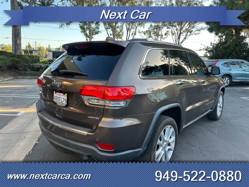 Legendary 2017 Jeep Grand Cherokee Limited 2WD With Back up Camera. Equipped with 6 Cylinder engine and Automatic Transmission, Equipped with features such as Seats, Alloy Wheels, Power Locks & Windows and much more, This nice and super sharp looking vehicle is in great shape inside and outside. The engine runs very strong. The transmission is in excellent performing condition. All the power equipment and gauges work perfect. The attractive exterior is in great shape. This vehicle looks, drives and feels perfect. The interior, as shown in the pictures, is in great shape with no signs of abuse. Everything looks fresh and clean inside. Fully Serviced, Smogged and ready for a new home. Clean Title, and Clean CarFax History Report. Please call (949) 522-0880 for personal assistance and to get more information about this vehicle. Price excludes government fees and taxes, any finance charges, any dealer document preparation charge, and any emission testing charge. The list price is based on cash purchase. Please note, the actual mileage at the time of delivery may be higher than stated on the ad due to local test drives and dealer demonstration. Vehicle may or may not have more than one key.